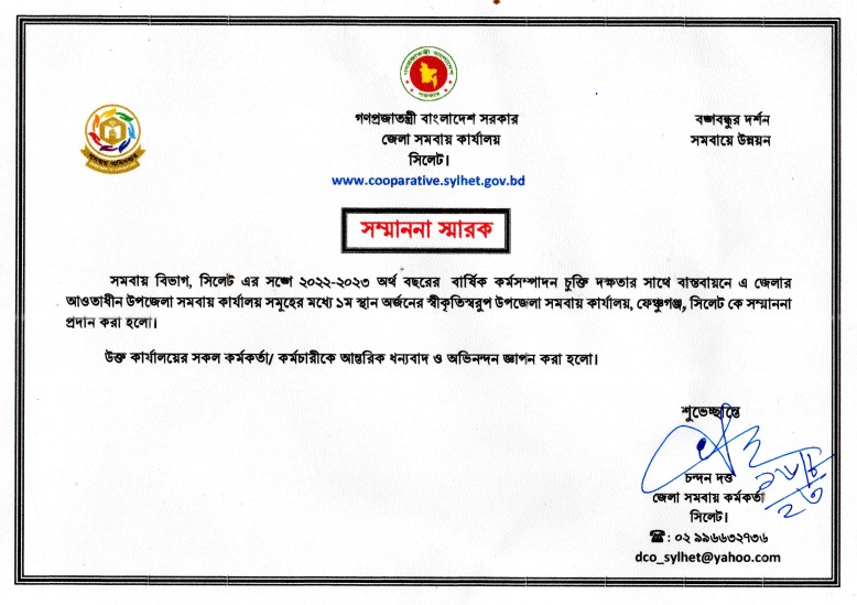 ৪) ২০২৩-২৪খ্রি. বর্ষের লক্ষ্যমাত্রা অনুযায়ী সমবায় উন্নয়ন তহবিল ১০০% আদায় হয়েছে।